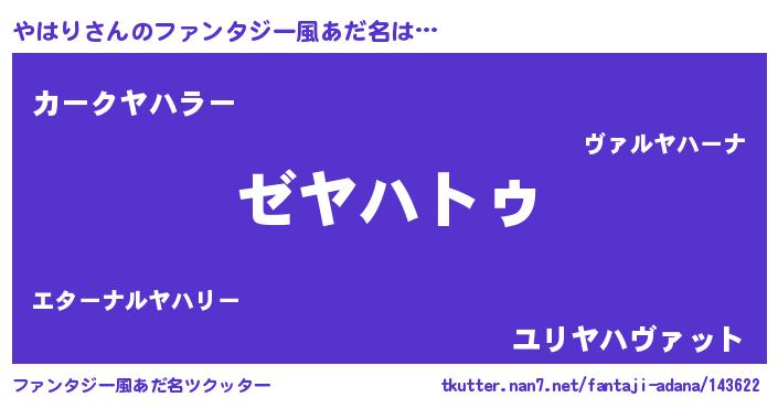 | ヒーロー風カッコイイあだ名 | 『最強戦士ヤハリ』『仮面ヤハダー』 |