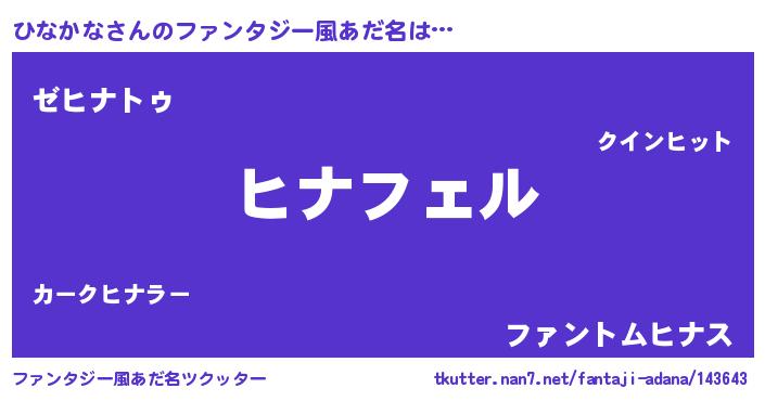 | 伝説のあだ名 | 『伝説のスナイパーひなかな』 |