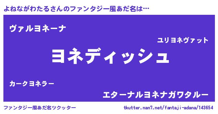| 意味不明あだ名 | 『永久保存よねながわたる』 |