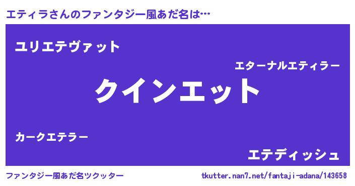 | ヒーロー風カッコイイあだ名 | 『愛の使者エティラ』『ネオエティラ』 |