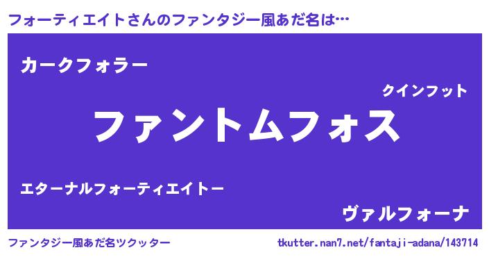| 胡散臭い通販商品みたいなあだ名 | 『信頼と実績のサプリメント…その名も「フォーティエイト」』 |