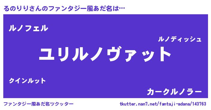 | ヘコむあだ名 | 『るのにゅー』『るのりり(爆)』 |