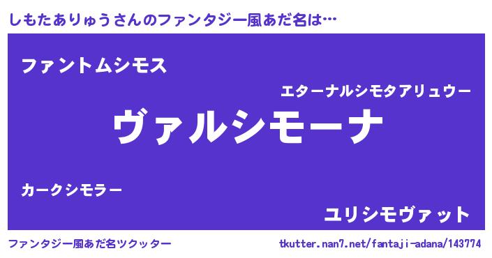 | 男性向けラノベタイトル風あだ名 | 『この素晴らしい世界にしもたありゅうを!』 |