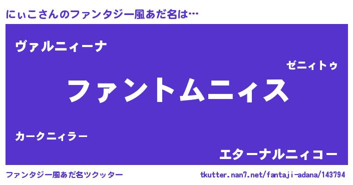 | 意味不明あだ名 | 『とにかく怪しいにぃこ』『自称にぃこ』 |