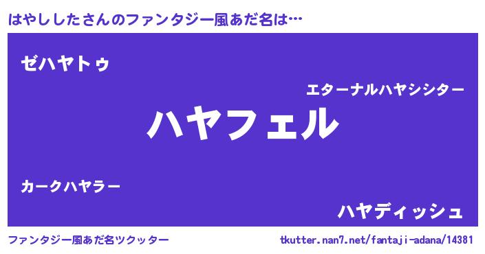 | 意味不明あだ名 | 『ペロリンはやしした』『自称はやしした』 |