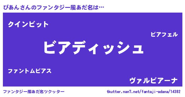 | ヘコむあだ名 | 『びあん(笑)』『びあにー』 |