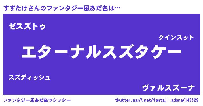 | 意味不明あだ名 | 『すずたけフォーエバー』『自称すずたけ』 |