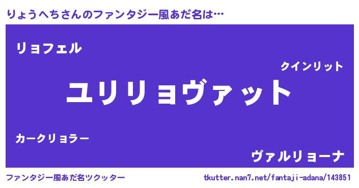 | 男性向けラノベタイトル風あだ名 | 『りょうへち~年齢イコール彼女いない歴の魔法使い~』 |