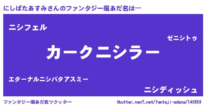 | 欧米人風あだ名 | 『にしばたあすみ・ステッグマイヤー』 |