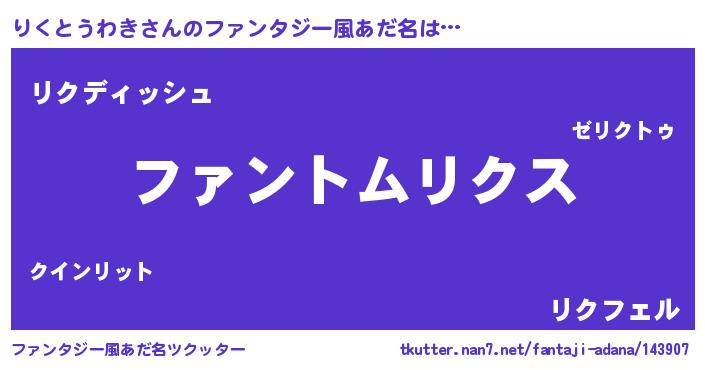 | 意味不明あだ名 | 『とにかく怪しいりくとうわき』 |