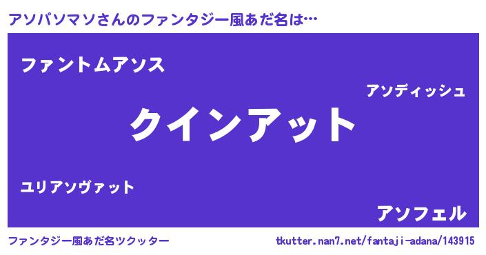 | 欧米人風あだ名 | 『アンジェラ・アソパソマソ』 |