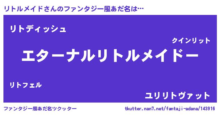 | 女子向けラノベタイトル風あだ名 | 『リトルメイドの雑貨屋さん』 |