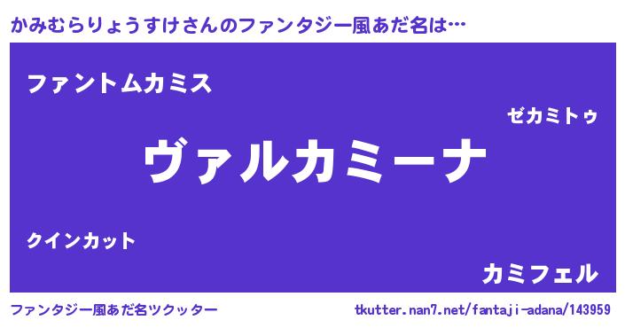 | 男性向けラノベタイトル風あだ名 | 『魔弾の王とかみむらりょうすけ』 |