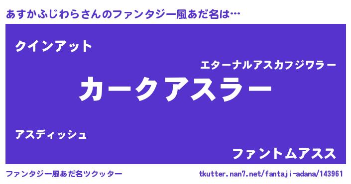 | 男性向けラノベタイトル風あだ名 | 『緋弾のアスカフジワラ』 |