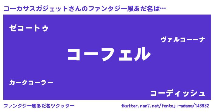 | 男性向けラノベタイトル風あだ名 | 『コーカサスガジェットアートオンライン』 |