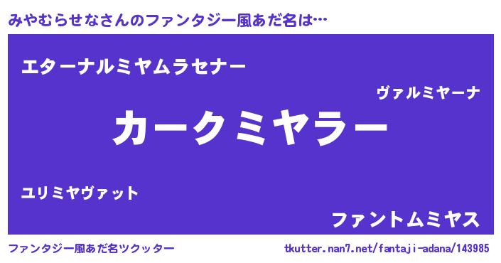 | 欧米人風あだ名 | 『アンジェラ・みやむらせな』 |
