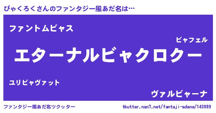 | 男性向けラノベタイトル風あだ名 | 『びゃくろくに滅ぼされるだけの簡単なお仕事です』 |