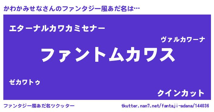 | 女子向けラノベタイトル風あだ名 | 『かわかみせなは平凡を望む』 |