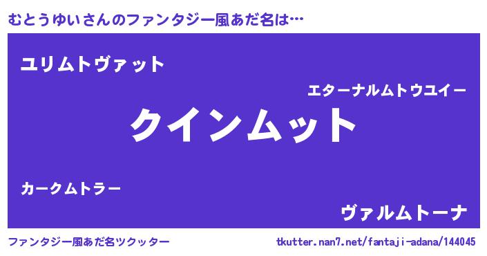 | ヒーロー風カッコイイあだ名 | 『慈愛の使者むとうゆい』『仮面ムトダー』 |
