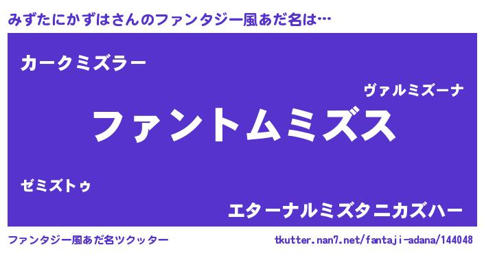 | 男性向けラノベタイトル風あだ名 | 『みずたにかずはの嫁は女の子じゃないと思った?』 |
