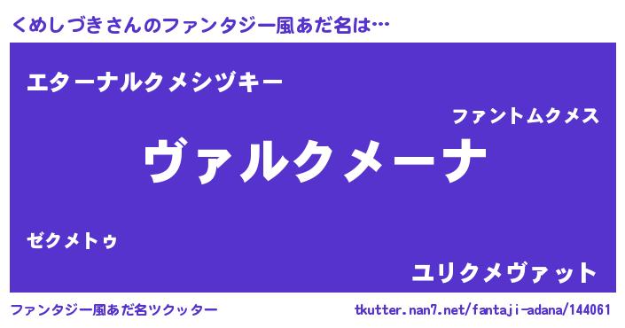 | 男性向けラノベタイトル風あだ名 | 『くめしづきに滅ぼされるだけの簡単なお仕事です』 |