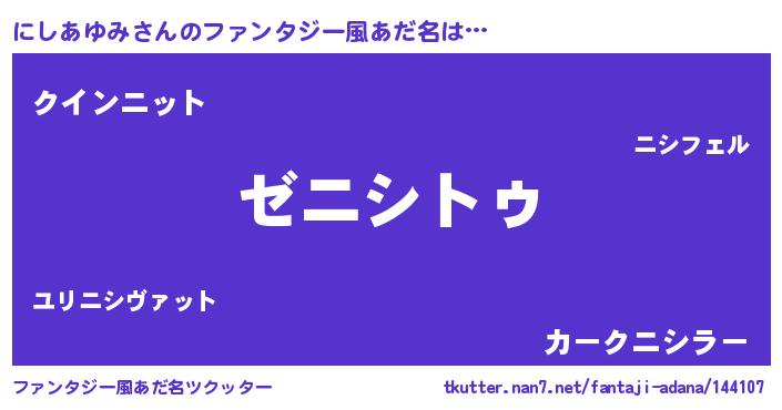 | 女子向けラノベタイトル風あだ名 | 『闇のにしあゆみ』 |