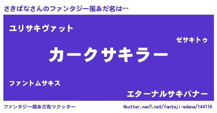 | ヒーロー風カッコイイあだ名 | 『ウルトラさきばなマン』『暗黒騎士サキ』 |