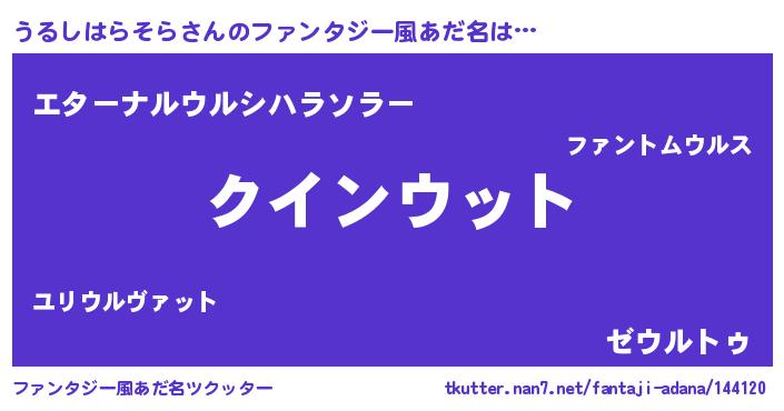 | 女子向けラノベタイトル風あだ名 | 『うるしはらそら恋絵巻』 |