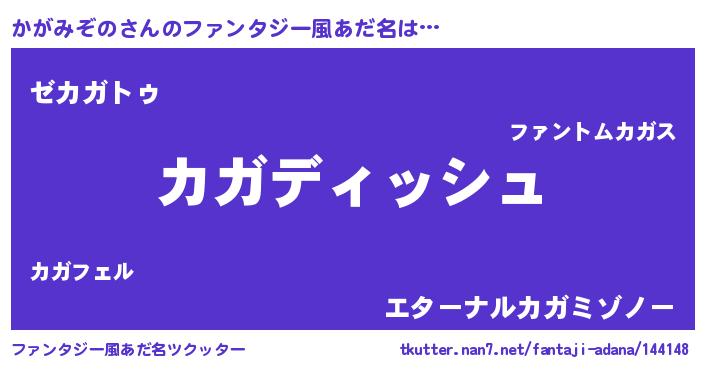 | ヒーロー風カッコイイあだ名 | 『ネオカガミゾノ』『銀牙騎士カガ』 |