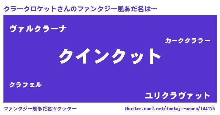 | 男性向けラノベタイトル風あだ名 | 『ノーゲーム・ノークラークロケット』 |