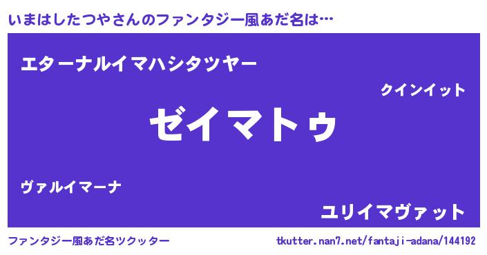 | 男性向けラノベタイトル風あだ名 | 『Re:いまはしたつやから始める異世界生活』 |