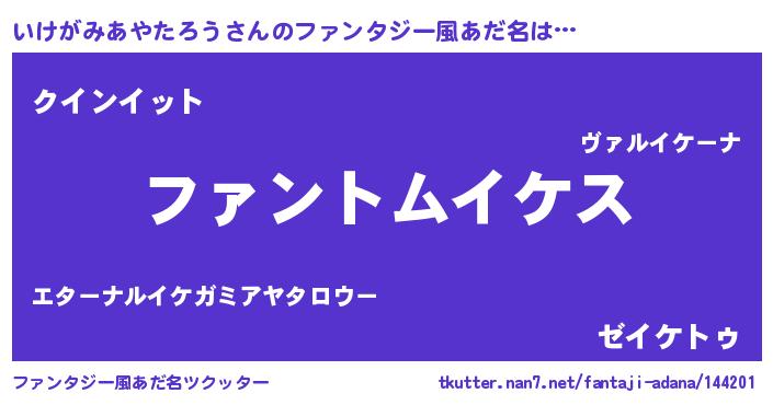 | 意味不明あだ名 | 『とにかく怪しいいけがみあやたろう』 |