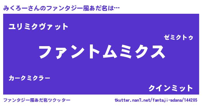 | ヒーロー風カッコイイあだ名 | 『幻影騎士ミク』『天空の使者みくろー』 |
