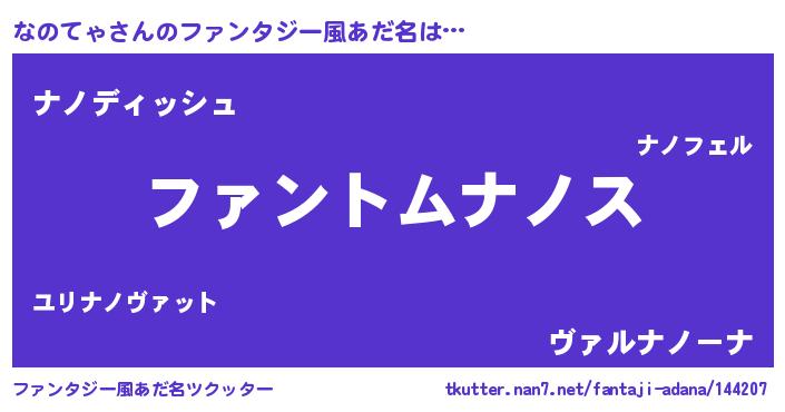 | ヒーロー風カッコイイあだ名 | 『魔戒騎士ナノ』『ネオナノテャ』 |