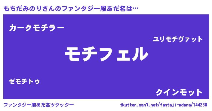 | 男性向けラノベタイトル風あだ名 | 『もちだみのりの憂鬱』 |