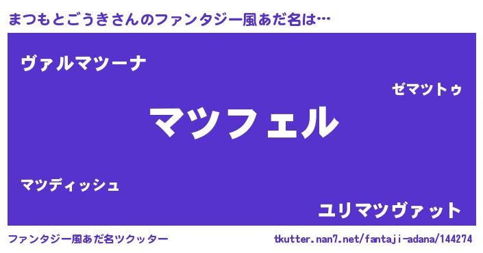 | 男性向けラノベタイトル風あだ名 | 『マツモトゴウキアートオンライン』 |