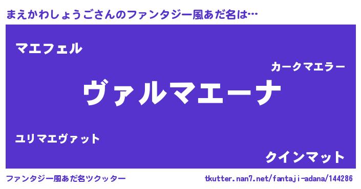 | 男性向けラノベタイトル風あだ名 | 『魔弾の王とまえかわしょうご』 |