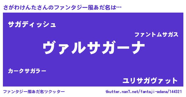 | ヒーロー風カッコイイあだ名 | 『仮面サガダー』『ネオサガワケンタ』 |