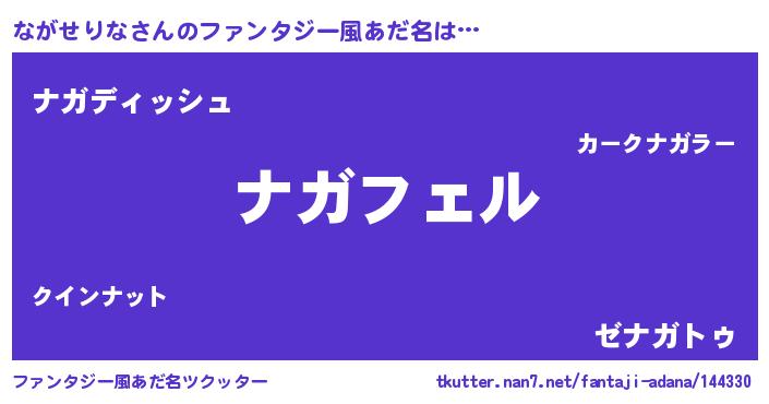 | 男性向けラノベタイトル風あだ名 | 『ナガセリナアートオンライン』 |