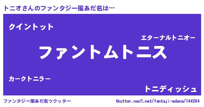 | 女子向けラノベタイトル風あだ名 | 『トニオ様がみてる』『トニオ恋絵巻』 |