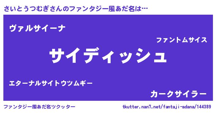 | 意味不明あだ名 | 『永久保存さいとうつむぎ』 |