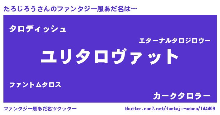 | 男性向けラノベタイトル風あだ名 | 『たろじろう~年齢イコール彼女いない歴の魔法使い~』 |