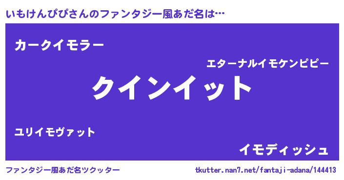 | ヒーロー風カッコイイあだ名 | 『慈愛の使者いもけんぴぴ』 |