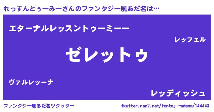 | 意味不明あだ名 | 『自称れっすんとぅーみー』 |