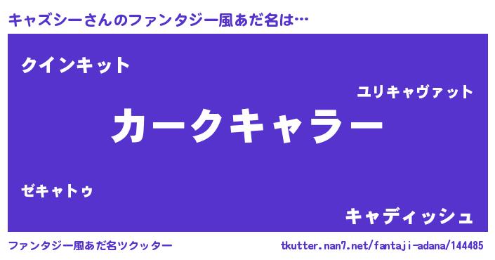 | 男性向けラノベタイトル風あだ名 | 『キャズシーに滅ぼされるだけの簡単なお仕事です』 |