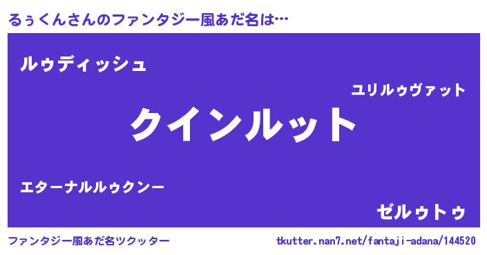 | 女子向けラノベタイトル風あだ名 | 『るぅくん恋絵巻』『るぅくんの契約王妃』 |