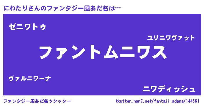 | ヒーロー風カッコイイあだ名 | 『暗黒騎士ニワ』『最強戦士ニワタリ』 |