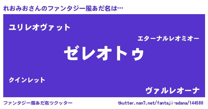 | 男性向けラノベタイトル風あだ名 | 『Re:れおみおから始める異世界生活』 |