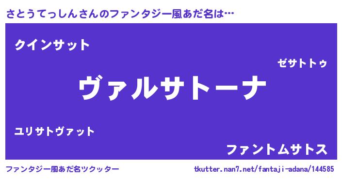 | 男性向けラノベタイトル風あだ名 | 『魔弾の王とさとうてっしん』 |
