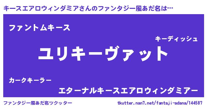 | 女子向けラノベタイトル風あだ名 | 『キースエアロウィンダミアの玉の輿計画!』 |
